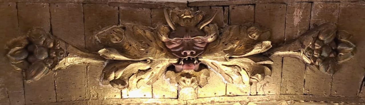 Igual de interesante resulta observar que en el arco toral, se encuentra tallado en madera y policromado el mismísimo diablo, ese que describían los estudiantes con admiración y mucha intensidad. Se dice que es único en Latinoamérica, y que fue labrado para enseñar, durante el adoctrinamiento, la diferencia entre el bien y el mal.